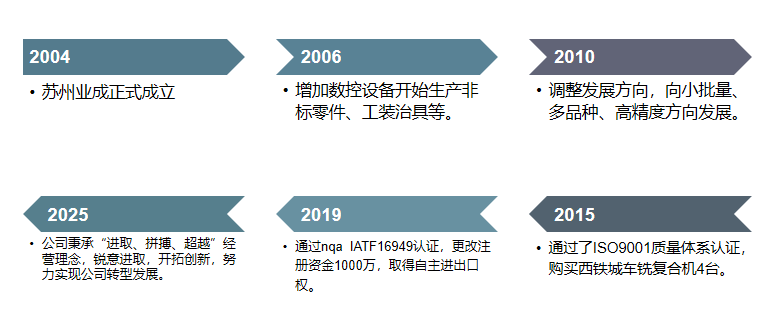 蘇州業(yè)成精密是集設(shè)計(jì)、生產(chǎn)、銷售、服務(wù)為一體的精密加工型企業(yè),主要為外資企業(yè)做配套服務(wù)。公司創(chuàng)建于2004年,位于蘇州市吳中區(qū)橫涇鎮(zhèn)堯南路30號(hào),擁有加工中心12臺(tái)、CNC數(shù)控車床17臺(tái)、車銑復(fù)合5臺(tái)、普通車床等生產(chǎn)設(shè)備,產(chǎn)品分為非標(biāo)機(jī)械零部件、夾具治具類及滾軸類等產(chǎn)品。涉及領(lǐng)域有通信電子、自動(dòng)化機(jī)械設(shè)備、救生設(shè)備、電器、醫(yī)療等。